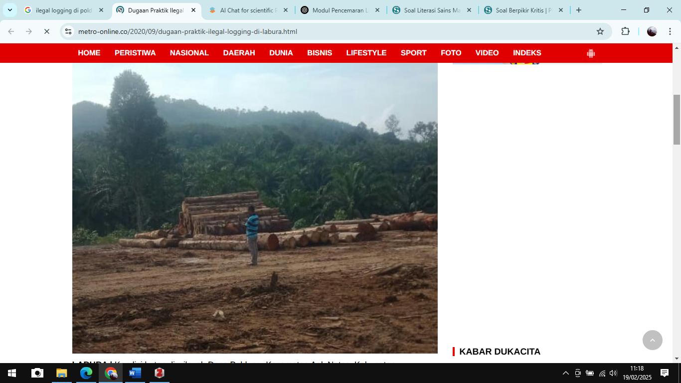 Perhatikan Gambar Berikut. Gambar tersebut menunjukkan illegal logging pohon di hutan Poldung, Kabupaten Labuhanbatu Utara yang jika terus dilakukan maka akan merusak hutan. Allah berfirman dalam Al-Qur'an: "Dan janganlah kamu membuat kerusakan di bumi setelah Allah memperbaikinya." (QS. Al-A’raf: 56), yang menjadi peringatan agar manusia tidak merusak hutan dengan pembalakan liar. Bagaimana seharusnya tindakan Pemerintah setempat agar tindakan tersebut tidak merusak hutan? (sebutkan minimal 2 tindakan)